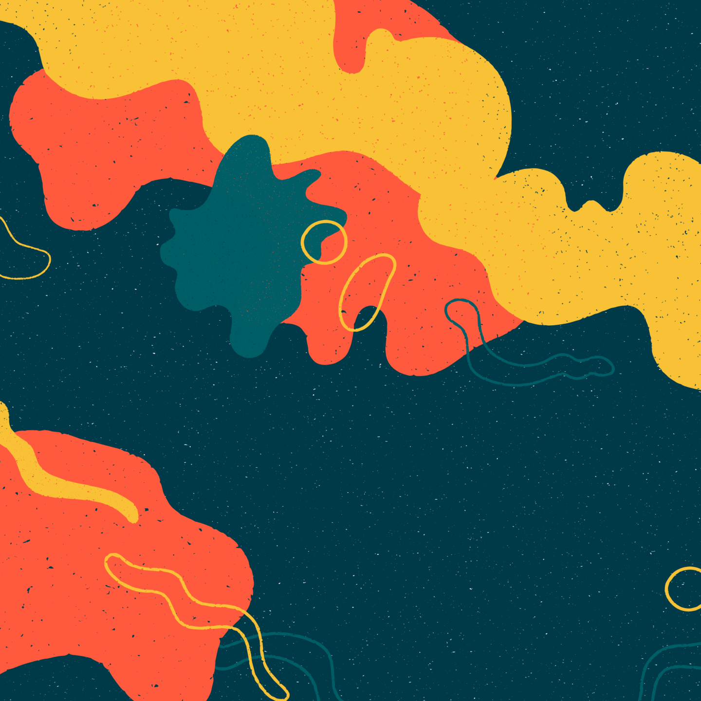 orange, violet, purple and white squigleys and blobs